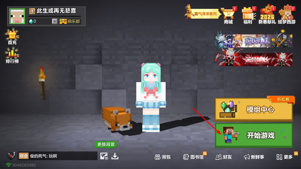 1、玩家进入游戏后,点击右下角的开始游戏按钮;