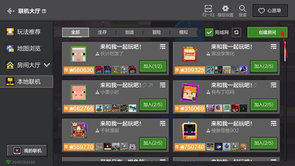 4、也可以点击本地联机,再点击创建房间;