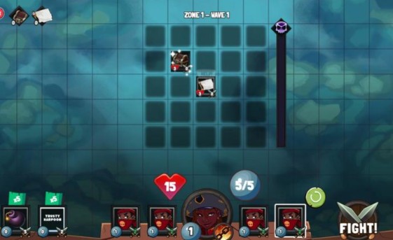 1、采用5x5网格战场,玩家通过部署船员进行移动和攻击,借助元素特性与敌方弱点制定策略。